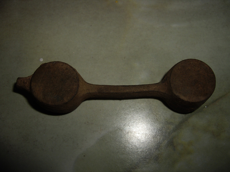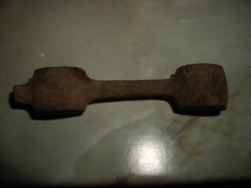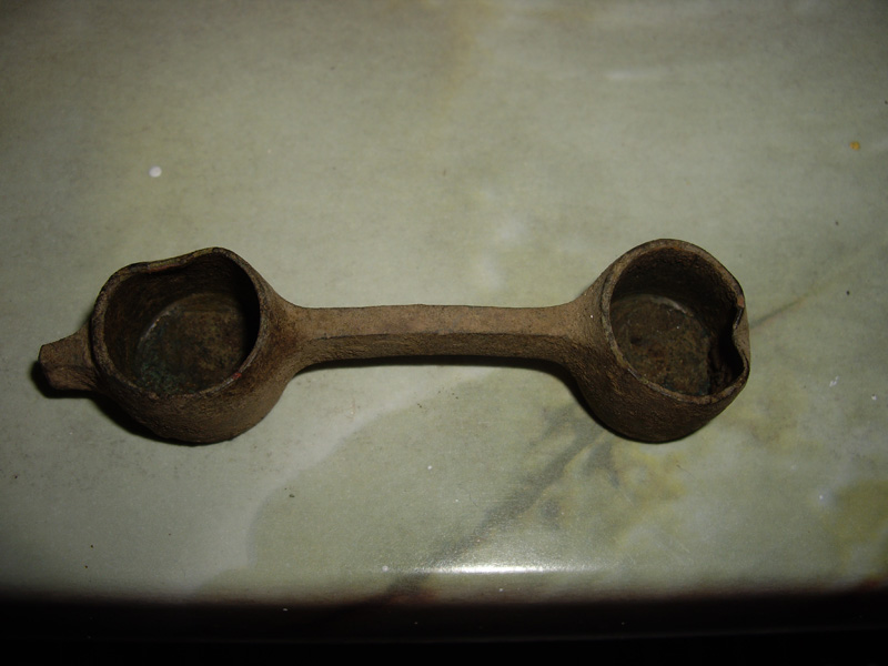 Das ist ein Teil eines Handtuchhalters.Die Dinger waren paarweise und in den Öffnungen steckte jeweils ein Glasstab.An den Halterungen waren Befestigungsklemmen,so konnte man das Ganze an einem Regal oder Tisch usw.befestigen.