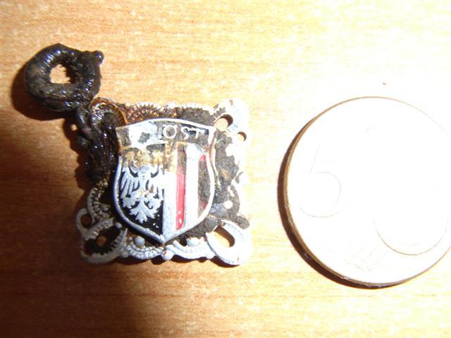 Das könnte auch zu einem Kettchen, Anhängsel von einem Schützenfest dort sein, vielleicht hat da einer ne Uhr mit Kettchen gewonnen und dann mit heimgenommen....