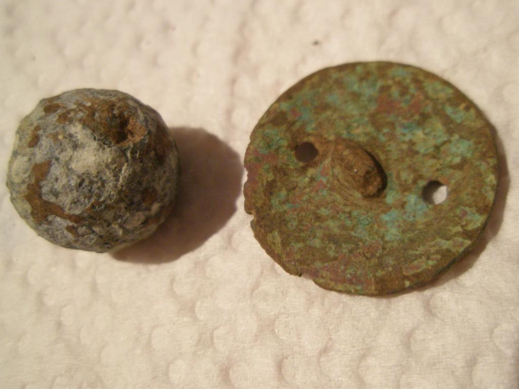 Ja, Knopf und Bleikugel. Warum würd Dich ne Kugel wundern, die wuden über Jahrhunderte von Jägern un Soldaten benutzt, datieren ist da aussichtslos....Gruß Septi