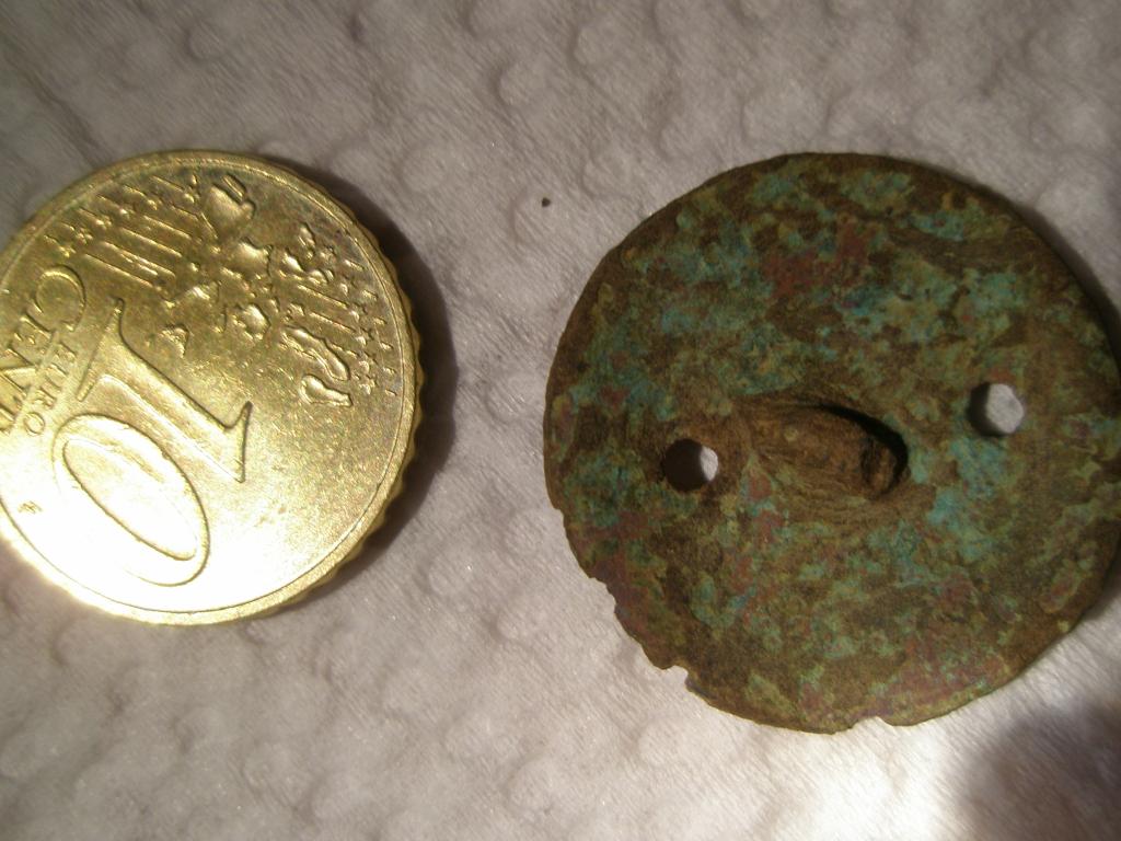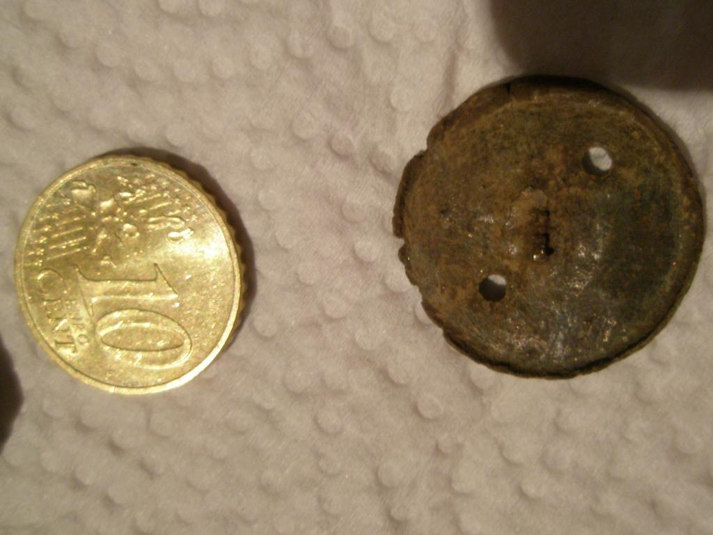 Nicht alles was zwei Löcher hat ist ein Knopf.Kann auch ein Gardinengewicht oder Fischernetzgewicht sein.Ich kenne ähnliche Teile,die aber aus Blei.