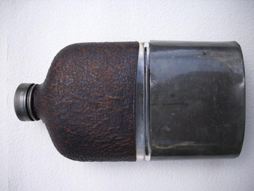 Von der Form her müsste die flasche dann um 1880 getragen worden sein. Feldflaschen (militärisch) aus der Zeit kenne ich aber nur mit Korkverschluss.