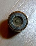 Das Teil war aber fühlbar schwerer als eine leere Hülse, und bei näherer Betrachtung war erkennbar, daß dort, wo normalerweise das Geschoss ist, sozusagen eine Art zweiter Hülsenboden mit Einprägung 3B 3 P 9 steckt, wobei innen so etwas wie ein abgebrochener kleiner Dorn zu sehen ist.