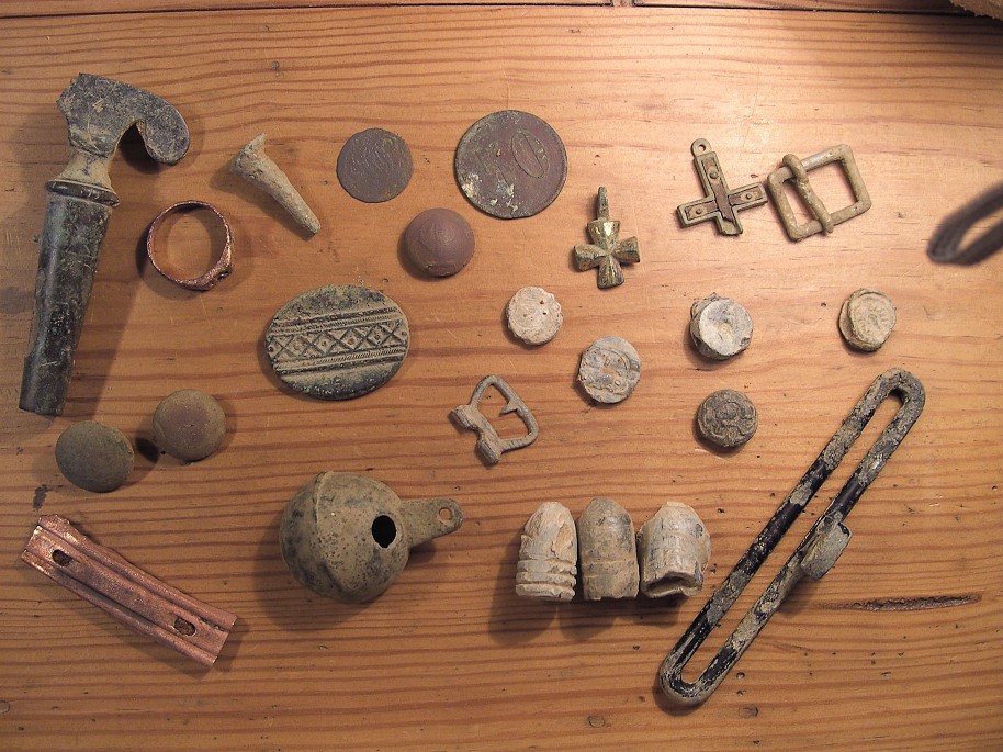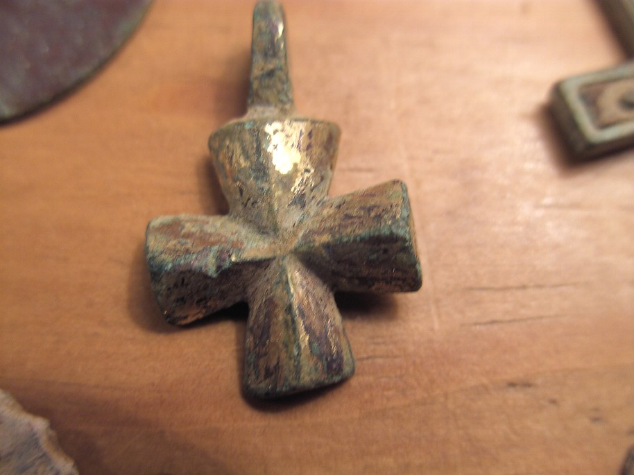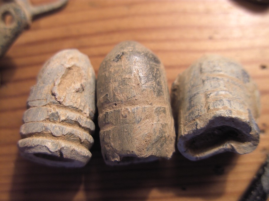 Es gibt auch wieder was zu bestimmen: Aus welcher Zeit stammen die Geschosse? Minié? Kann man das vergoldete Kreuz einem Alter zuordnen?