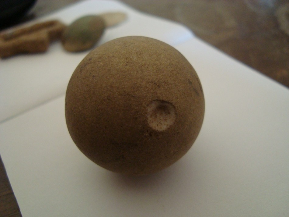 Nu zu dem eigentlichen UFO : der Kugel- hab sie beim Feld verlassen mit dem Auge gefunden-hat halb rausgeschaut. Was oder von was könnte die sein? Material weiß ich auch nicht. Durchmesser ist ca 30mm und das Gewicht ca 25g.