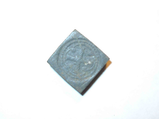 der würfelförmige Gegenstand ist aus Bronze und hat eine Höhe von 6 mm, Abmessung 16 x 15 mm.
