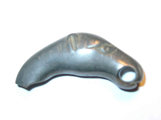 Der Pferdekopf ist ebenfalls aus Bronze und ca. 4 cm groß.