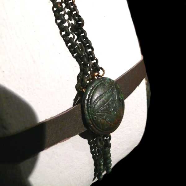 Ich denke mal, dass es sich um die Knöpfe schmaler Lederriemen am Zaumzeug eines Pferdes handelt. Solche Applikationen gab es zu allen Zeiten an den Pferdegebammseln... Manchmal mit dem Zweck, den Lederriemen zu halten (wie auf diesem Stück, keltischen Ursprungs), oder einfach nur zu reinen Zier-Verdeckungszwecken, wie HIER.