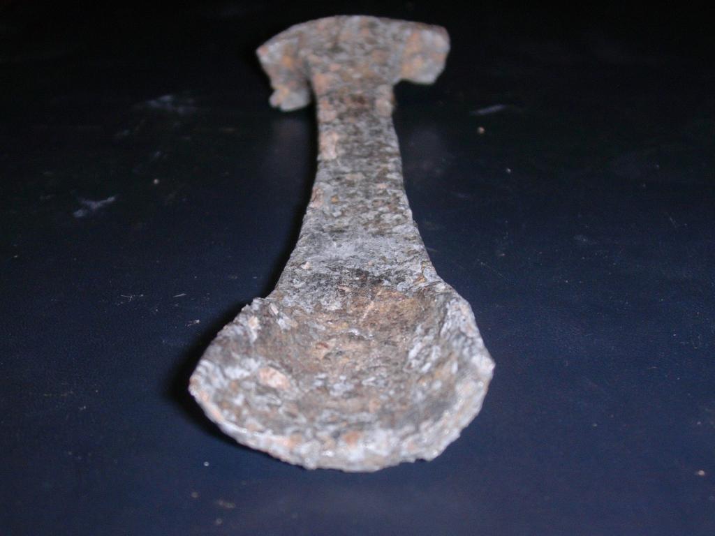 Das Teil liegt seit gestern abend in der E-lyse. Für ein Gerät der Holzfäller wohl zu klein.Hoffe auf etwas sehr altes(Vielleicht Schuhlöffel aus der Eisenzeit)