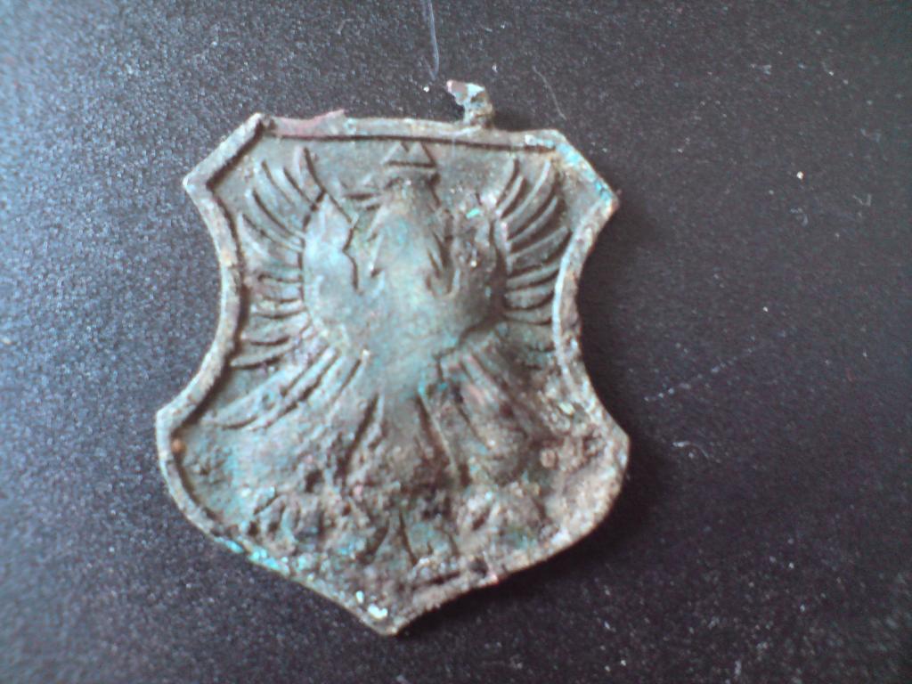 sieht aus wie ein Adler, hat nen Wappen in der mitte in den klauen hält der links nen strauch und rechts sowas wie ne Fackel. Oberndrüber ist sowas wie ne Sonne... Auf der Rückseite steht irgendwas mir.. frior Qualiti
