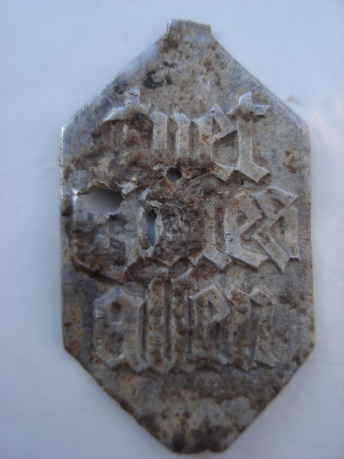 da ich heute eigentlich mein keller aufreumen sollte aber keine lust hatte , durchsuchte ich mein garten , ein paar münze kammen dabei raus aber auch das hier !! kennt das einer oder kann das einer lesen ? es ist nur 1,5cm lang und 1 cm breit !