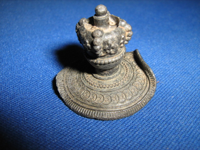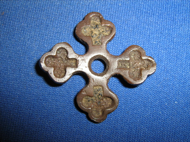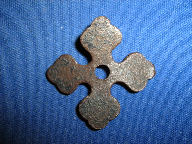 In den kleeblattartigen Vertiefungen war vermutlich einmal Emaille.