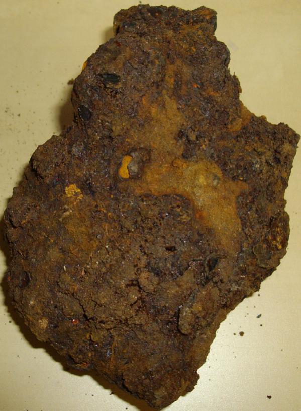 Ich war mal vor ein paar Monaten in der Gegend einer Muna sondeln und hab dort mitten im Wald, in ca. 60 cm Tiefe, dieses rostige etwas gefunden und möchte nun gerne wissen was es mal gewesen sein könnte. Der Klumpen ist 0,65 Kilo schwer und besonders in der Mitte magnetisch. Hier hab ich nun ein paar Fotos auf denen man auch die Größe erkennen kann: