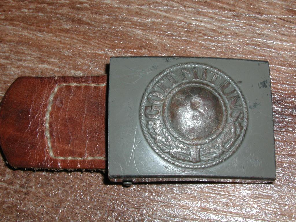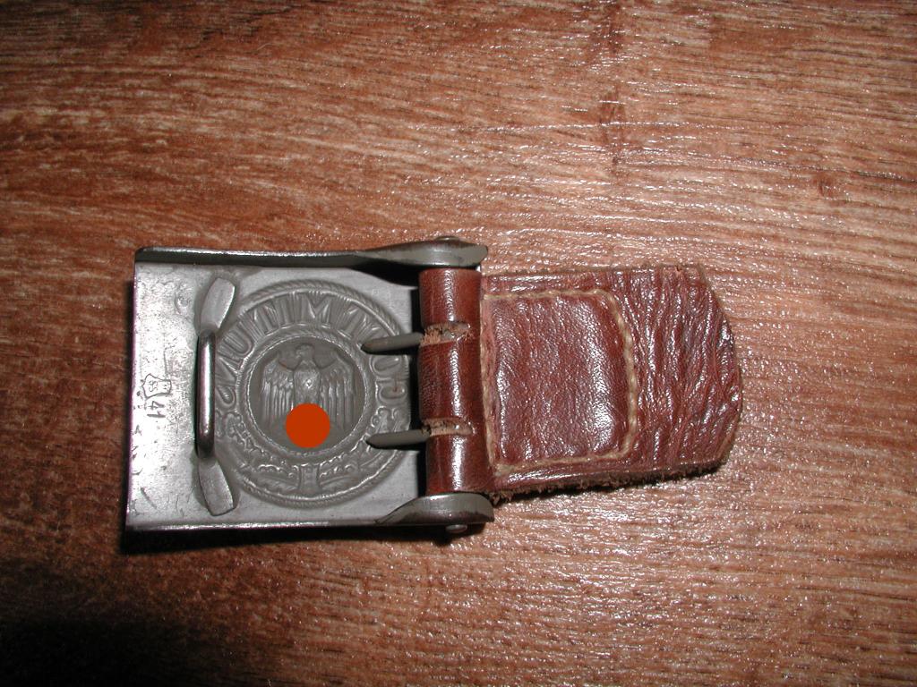 trotz des schlechten Bildes kann man doch ziemlich gut erkennen, dass das Koppelschloss eine Gurke ist. Solch eine Ausführung kenne ich überhaupt nicht. Bei der Identifikation sind vor allem die Rückseiten der jeweiligen Stücke wichtig.