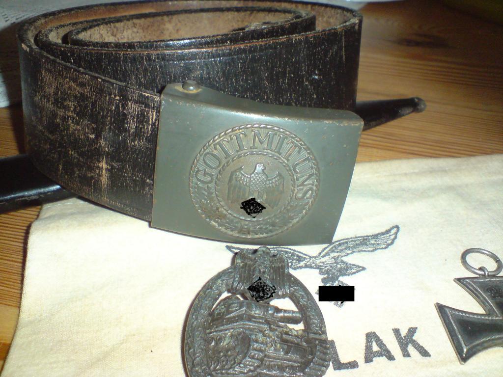 Beim Koppelschloss bin ich etwas hin und her gerissen,sieht aber eher nach guter Kopie aus.Der Vogel und die Buchstabenbreite stören mich ein wenig.Lieber Finger weg.