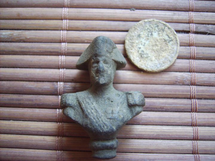 Beide Funde lagen etwa 150 Meter auseinander. Nun haben wir das Gefühl, daß diese Stücke von den Franzosen gewesen sein könnten. Vielleicht wäre das auch etwas für die Archäologin. Material: Blei