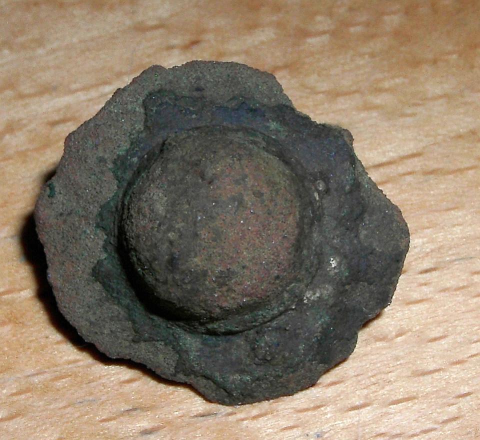 Erinnert mich wie üblich an den Fahrradklingelhelm Typus Heddernheim.... Aber die Schraube und das Auto....