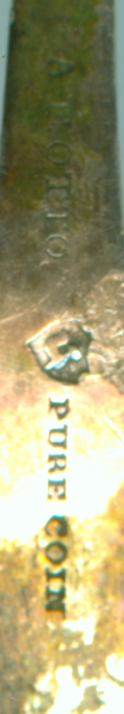 habe vor ein paar Wochen diesen Silberloeffel gefunden. Auf der Vorderseite sind zwei Namen eingraviert und auf der Rueckseite der Hersteller A.E. OTTO, Punze und dann PURE COIN. Die Punze zeigt einen Arm mit einem Hammer. Kann mir jemand weiterhelfen? Woher ist der Loeffel und vor allem wie alt ist er?
