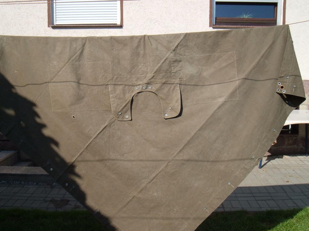 Ich hab ne russische Zeltbahn WK2 die ist aber rechteckig und wie die NVA Zeltbahn genäht. Ich benutz die im Auto zum Transport.