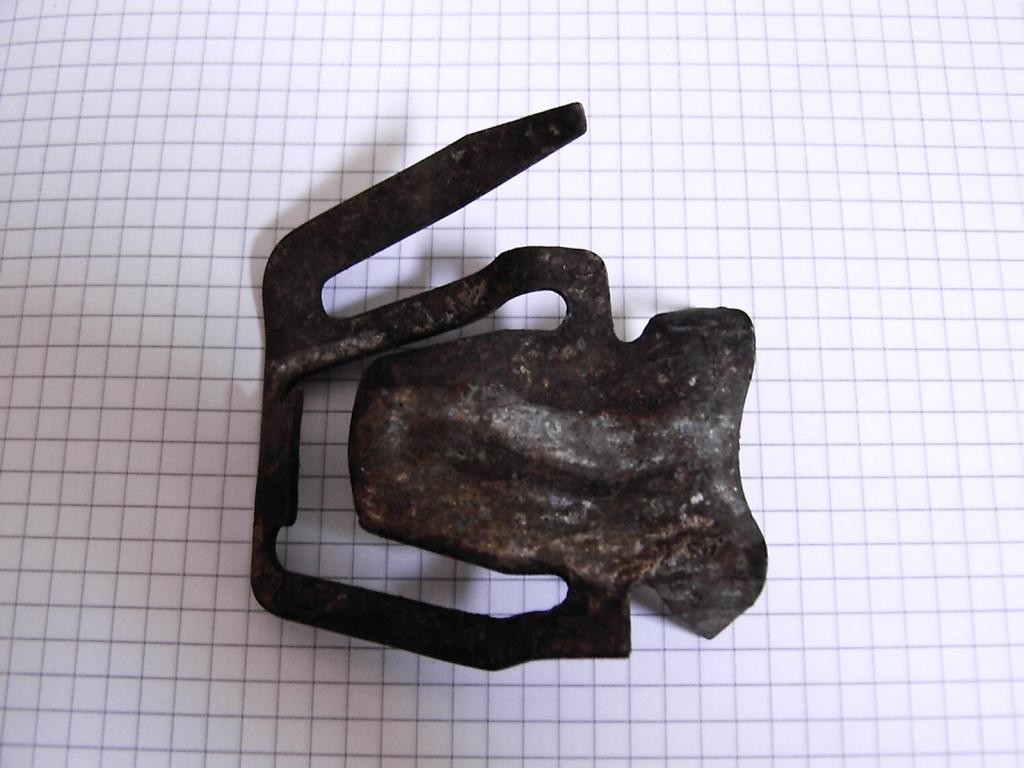 ich ziehe so bei fast jeden 2. Sondeln solche Schnallen (hab bestimmt schon 12 Stk) aus dem Acker. Bisher waren alle immer verrostet aber nun diesmal eine die noch sehr gut aussieht. Ich dachte bisher immer an einen Ranzen der hat doch auch solche verschlüsse, ist aber keiner. Hat einer eine Idee für und von was das Dingens ist.