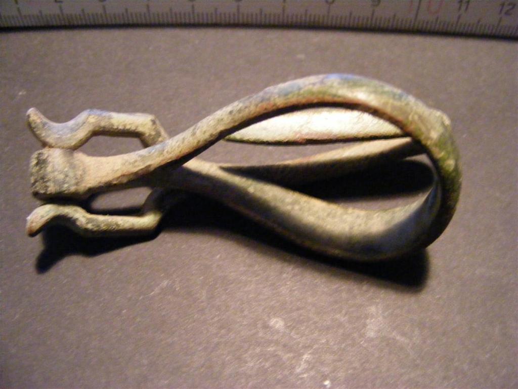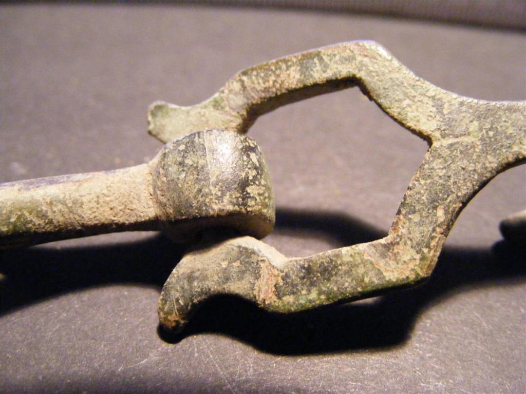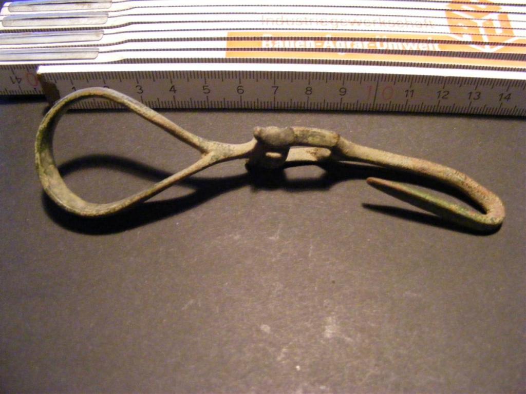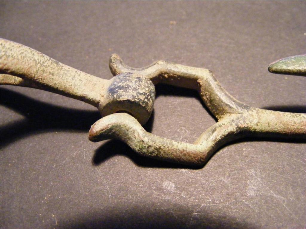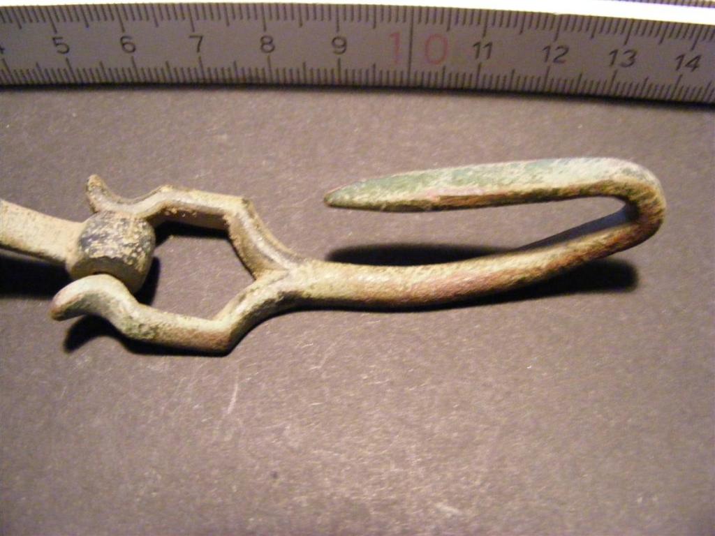 Das Teil ist durch das Gelenk beweglich und das Material ist Messing oder Bronze wobei ich zu ersterem tendiere.