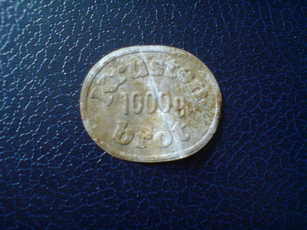 1. Ist ein kleines Aluplättchen wo drauf steht Krustenbrot 1000g ( 3,6cm Lang & 3,1cm Breit ). Am Fundort waren auch eine menge reste der Wehrmacht zu finden.