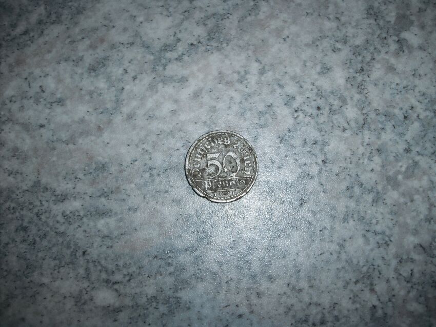 Bild 1+2:Ein 50 Pennig stück aus Aluminium von 1921