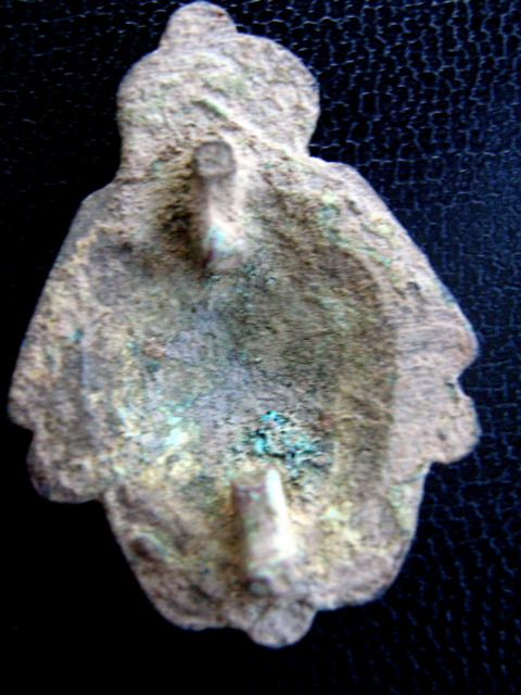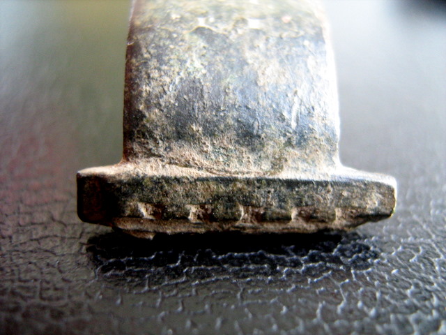 Das andere Teil ist ebenfals aus Bronze und in der Länge 38 mm. Sicher ist es ein Beschlag. Könnte es aber von einer Uniform stammen? Auf dem Acker haben nämlich einmal die Franzosen (1807) biwakiert.