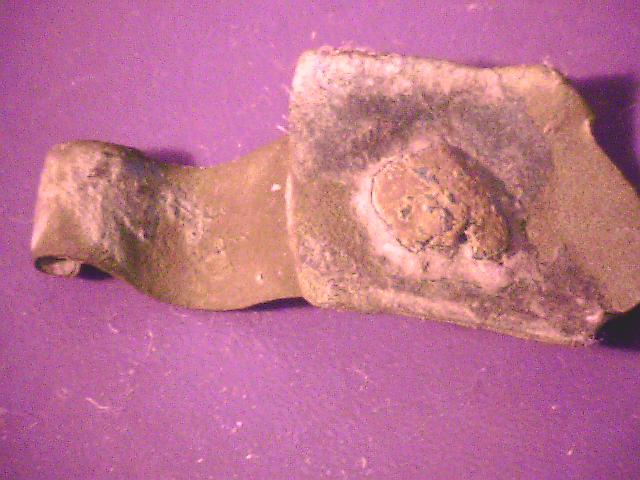 2: Beschlag von? Maße sind etwa 4x3 cm ohne den Knick zu "korrigieren".