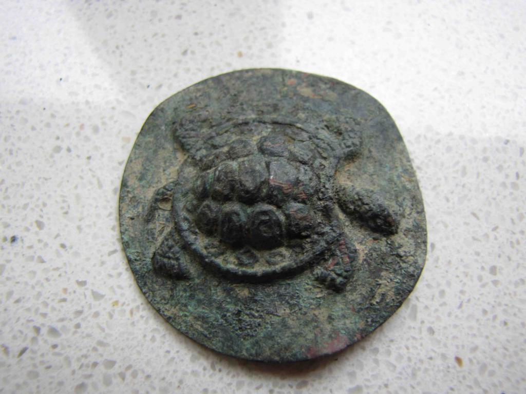 Ich finde die Schildkröte klasse - ist das ein Knopf? Die Schildkröte an sich war bei den Römern ein beliebtes Motiv.