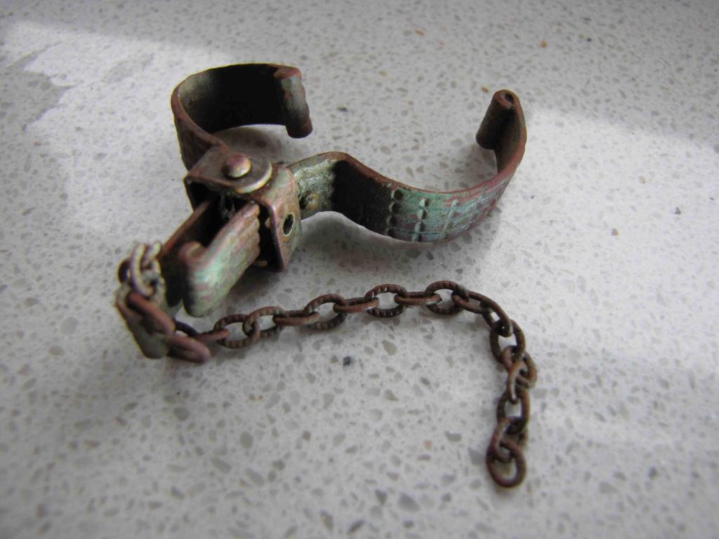 Eine Klauenfessel zum Sichern des Vogels am Falknerhandschuh?