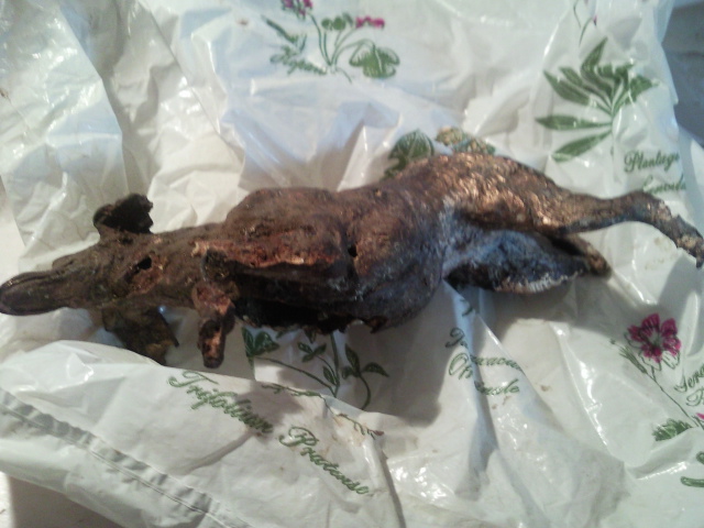 wir haben ein Hund unter eine Alten Baumwurzel gefunden.