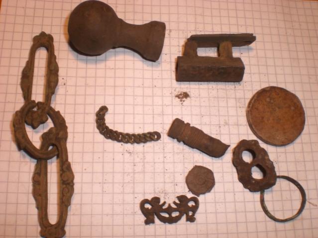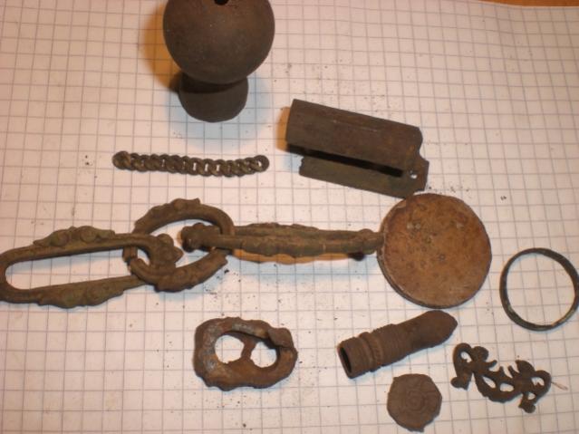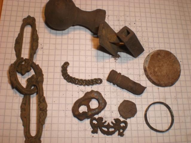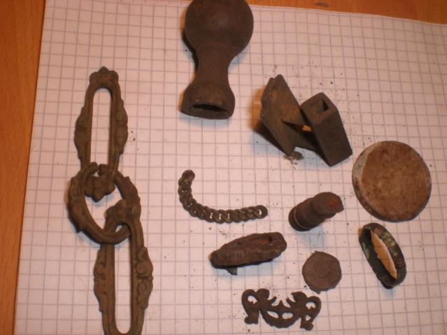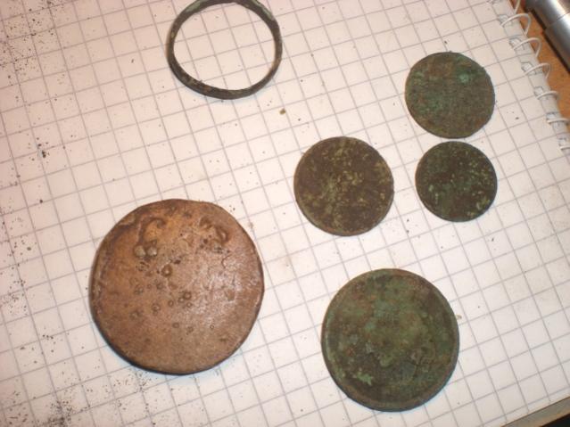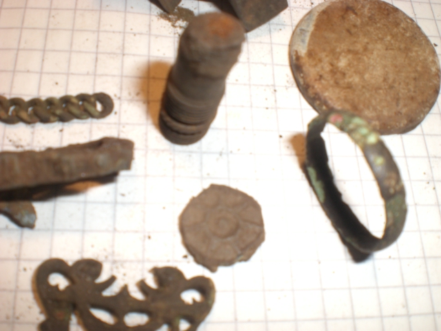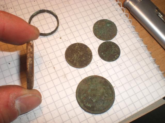 und ein Münz/medalien ähnliches objekt. evtl Zink/Blei ...dicke gammelschicht drum (kein rost)