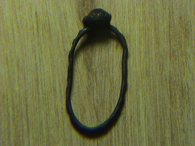 hab ich heut gefunden.Dünnes Teil aus Bronze oder Messing.Mit rotem Steinchen.Wer weß was darüber?
