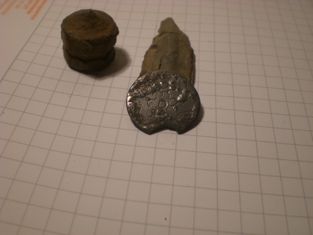Hi war heut mal seit langem wieder los und habe auch einen neuen acker angetestet,...und ..huh ja ,...2 sachen die ich nicht einordnen kann,..ich gaub das eine könnte eine münze sein? Oo sehr seltsames stück und aus Silber wie es aussieht
