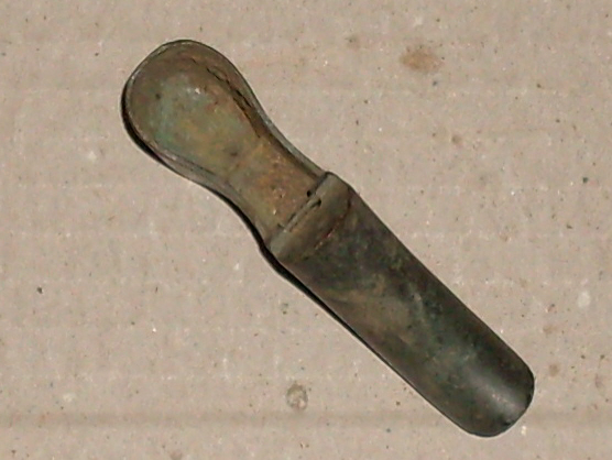 Dann hab ich noch einen Schuh vom Acker. Weiß jemand wofür der mal war??? Material dürfte Messing oder Bronze sein. ist 7cm lang, innen hohl und es war wohl mal ein Deckel dran.
