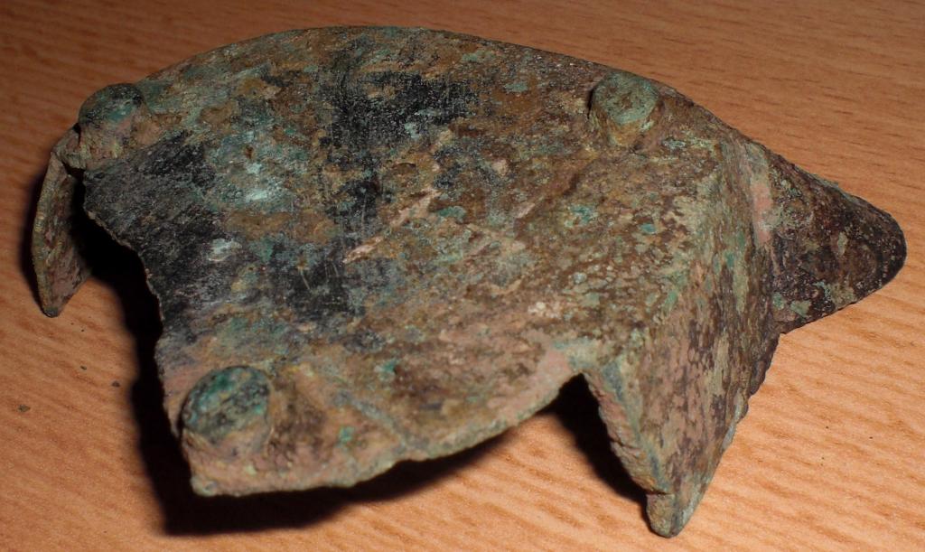 habe heute endlich mal wieder nach langer Pause 1 Stunde auf der Wiese verbracht und eine kleine scheint mir Pfanne gefunden. Diese lag in ca. 30-35 cm. Die Maße des Bruchstücks sind 70x70mm, die höhe ca.20mm! Material weiß ich noch nicht habe noch nicht dran rumgekratzt.