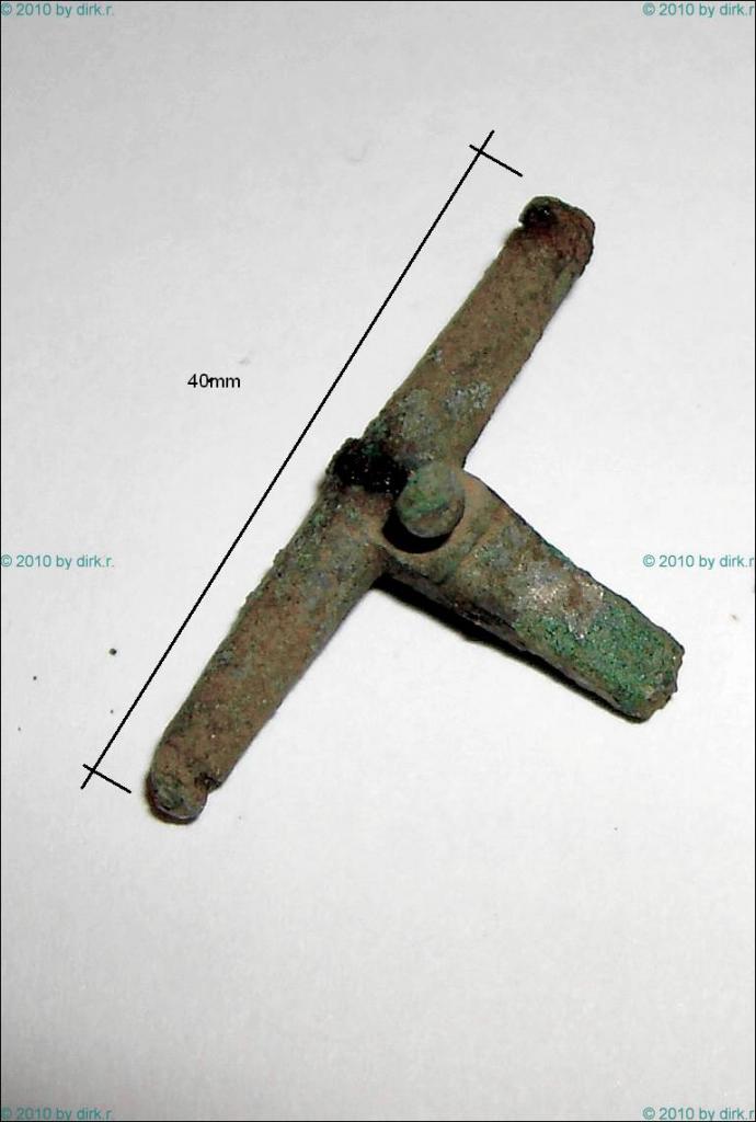 Erinnert mich irgendwie an eine Röhrenscharnierfibel (3-4Jh.), dem Vorläufer der Zwiebelknopffibeln.
