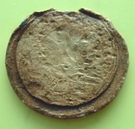 Was mich aber beschaftigt ist diese UFO Scheibe. 3,5 cm, Dicke 3 mm und Material Zinn oder Zink.