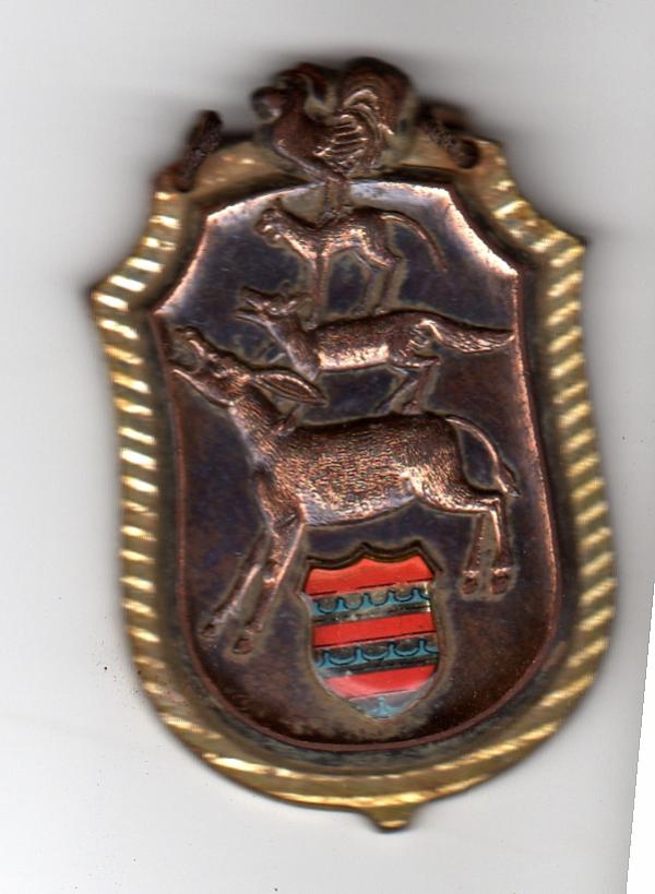 Auf der Plakette sind die Bremer Stadtmusikanten abgebildet und darunter ist ein Wappen (roter Schild mit Wellen) leider konnte ich das Wappen keiner Stadt oder keinem Verein zuordnen.