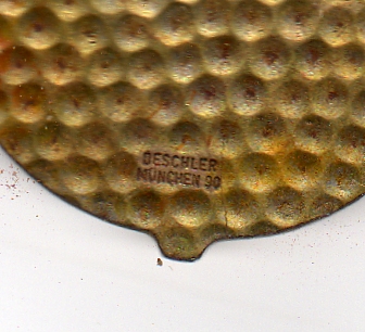 Hinten auf der Plakette ist eine Prägung „Deschler München 90“