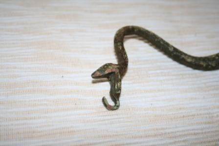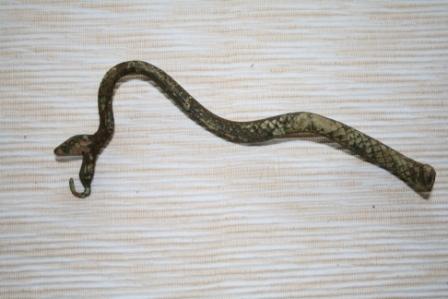 Daraus könnte man Schlußfolgern, das mit der Schlange einst irgendetwas umhergetragen wurde. Ich denke, man hat mit dieser Schlange ein kleines Licht transportiert. Am Haken des Schlangenmauls wurde eine kleine Laterne befestigt.