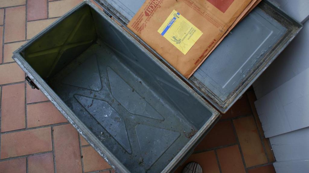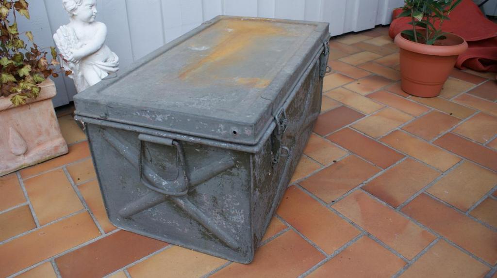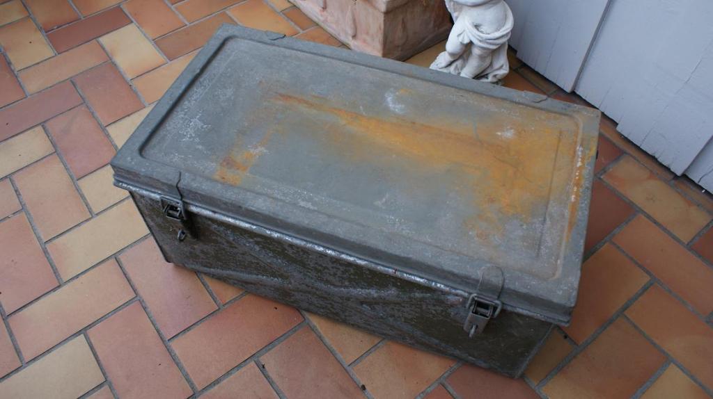 Da das Teil lackiert werden soll wollte ich vorab klären, um was für eine Kiste es sich dabei handeln könnte...mein Bekannter hat sie zusammen mit einem Heeresdolch beim Ausmisten eines Schuppens gefunden. Den Dolch kriege ich leider nicht