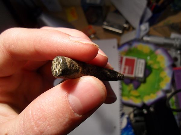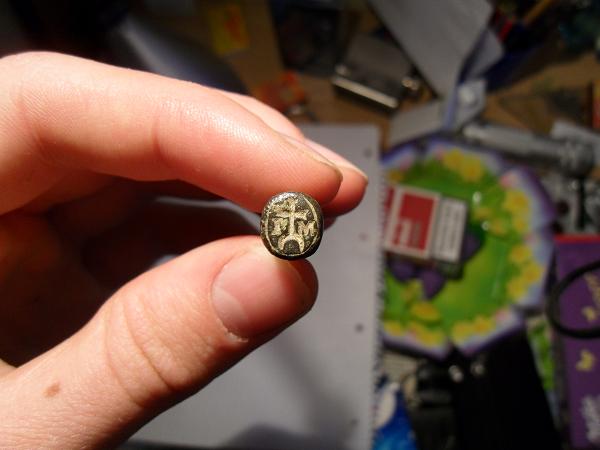 Hab heute diese(s) kleine Siegel/Petschaft auf einem Acker in Bayern gefunden... das MI und das Kreuz weist auf was kirchliches hin denk ich mal..