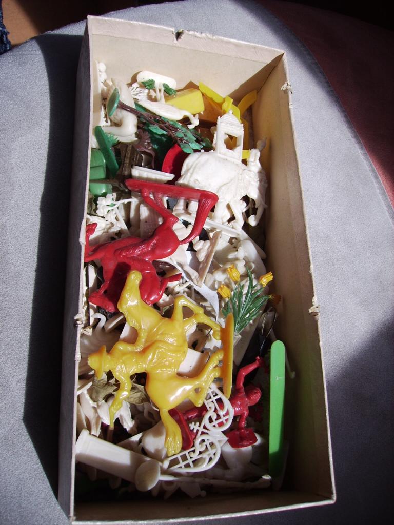 Die Figuren in der Schachtel sind teilweise Margarinefiguren.