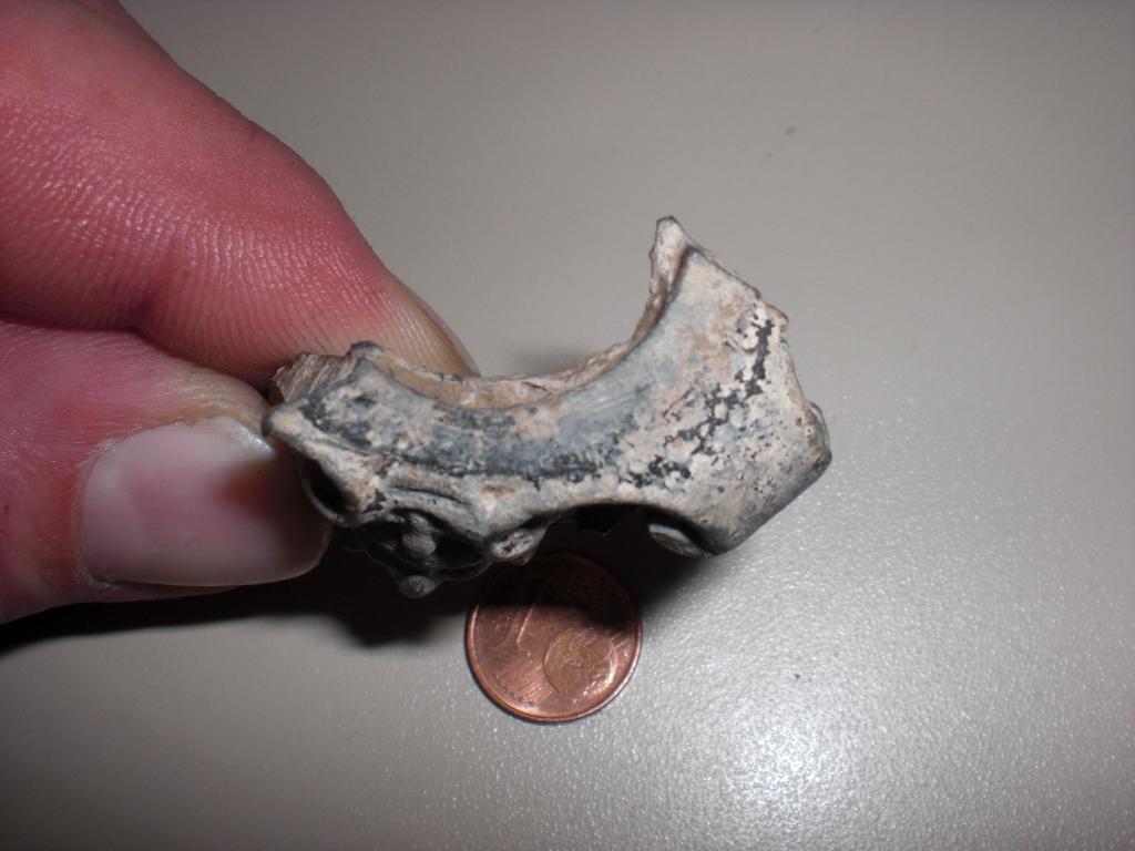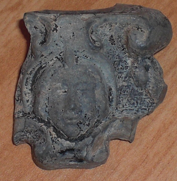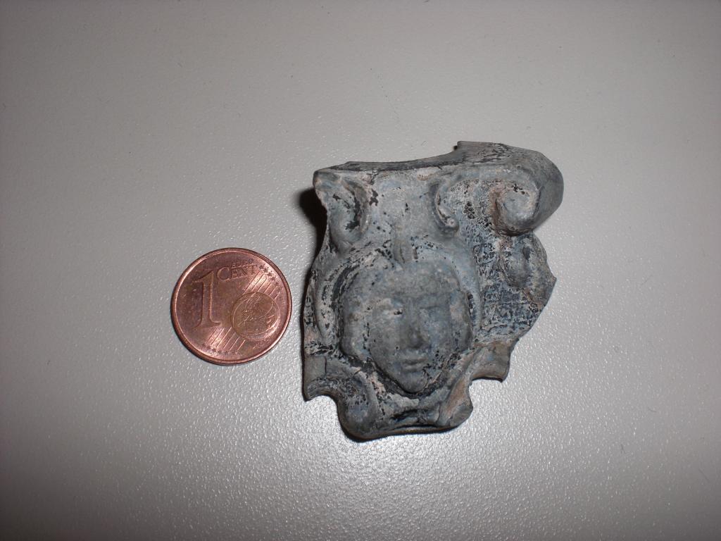 Das andere Teil ist kein Bruchstück sondern ein Mützen oder Lederbeschlag aus napoleonischer Zeit.Ich habe auch so ein Teil gefunden,weiß aber trotz aller Bemühungen auch noch nicht genau,wo es dran war.