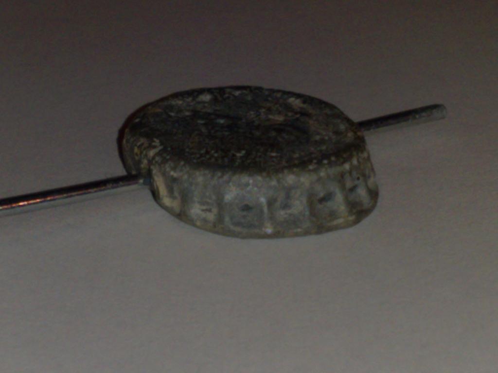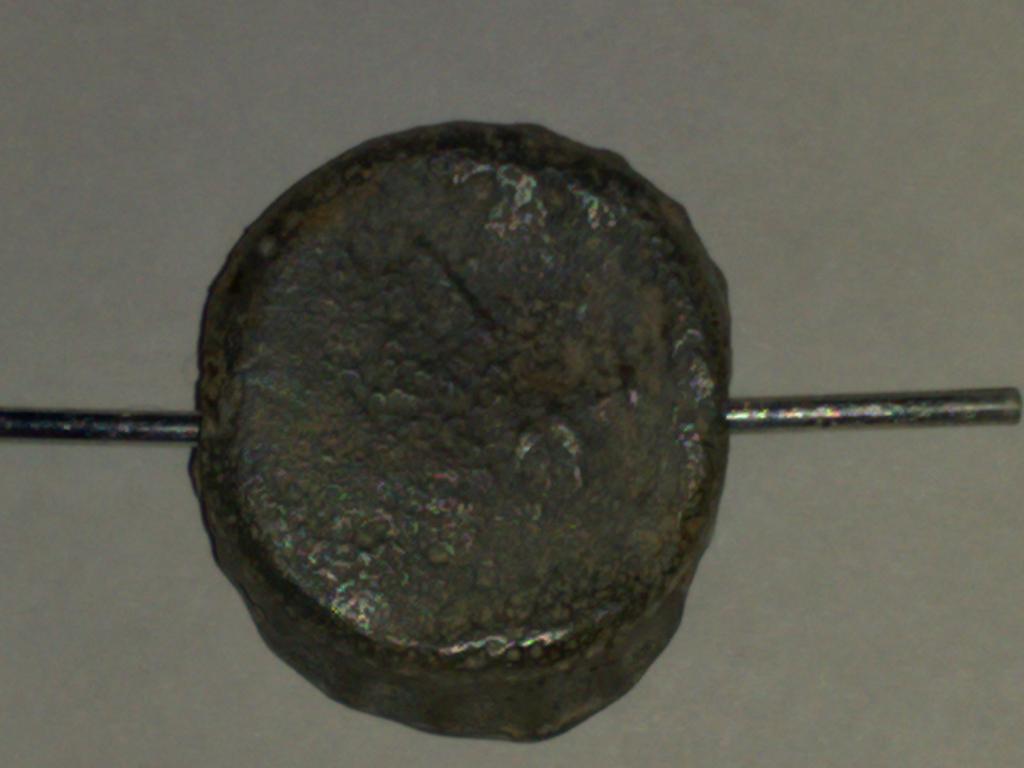 es besteht aus Blei hat von links nach rechts eine art bohrung ( vielleicht für ne kette) wo die nadel durch geht siehe bild, auf einer seite kann man etwas erkennen das nach sonnenstrahlen aussieht und eine art kreuz erahnen lässt,