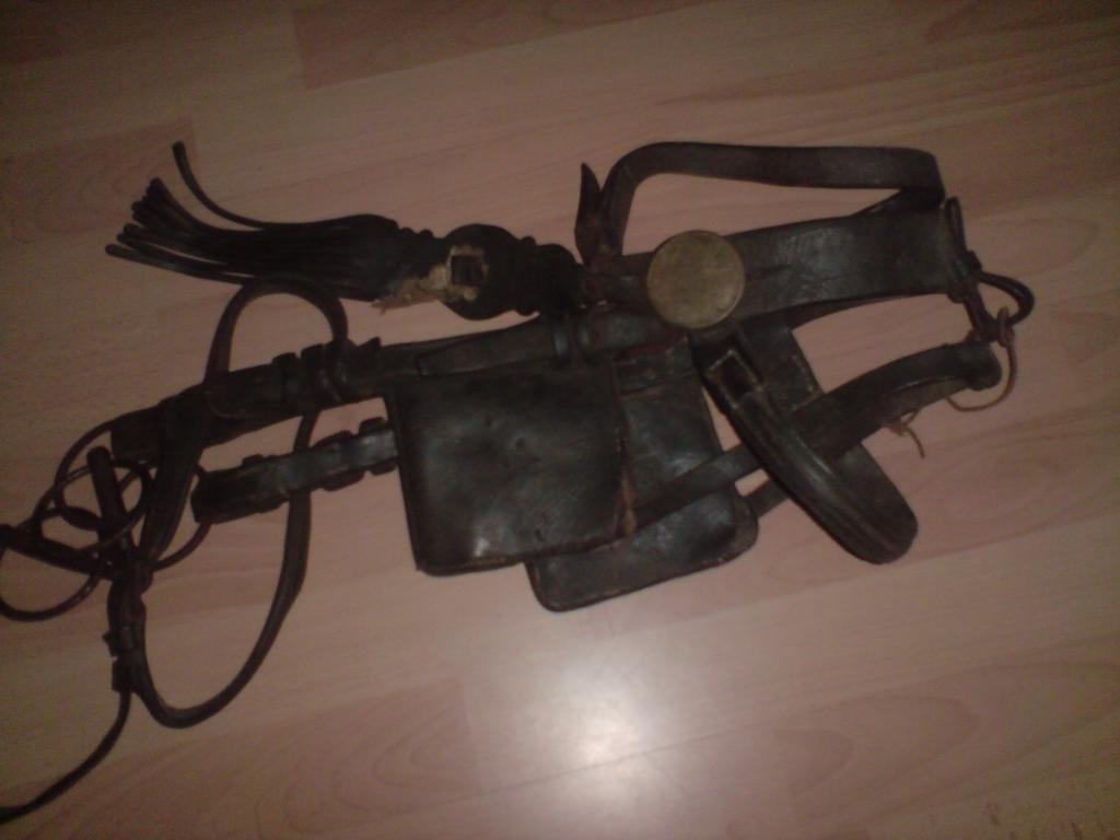 Das Geschirr von mir ist auch schwer während der Benutzungzeit geflickt worden, hast schon recht, könnte auch non nem Kummet sein, aber genau wirds woh nur ein Gürtler sagen können, und die sind nicht mehr so wie Sand am Meer zu finden, deswegen der unverhohlene Verweis auf den Verdacht Wenn ichs umdrehe, werdet Ihr nämlich nus Leder und Pechgarn sehen... ausserdem ahebn die da mir Blei rumgemacht, aber ich geh nochmal los.... wieder da: Haben nur einfache Ösen und stramme Bügel, hast recht, sollen ja auch was aushalten... also weiterhin ein Rätsel...