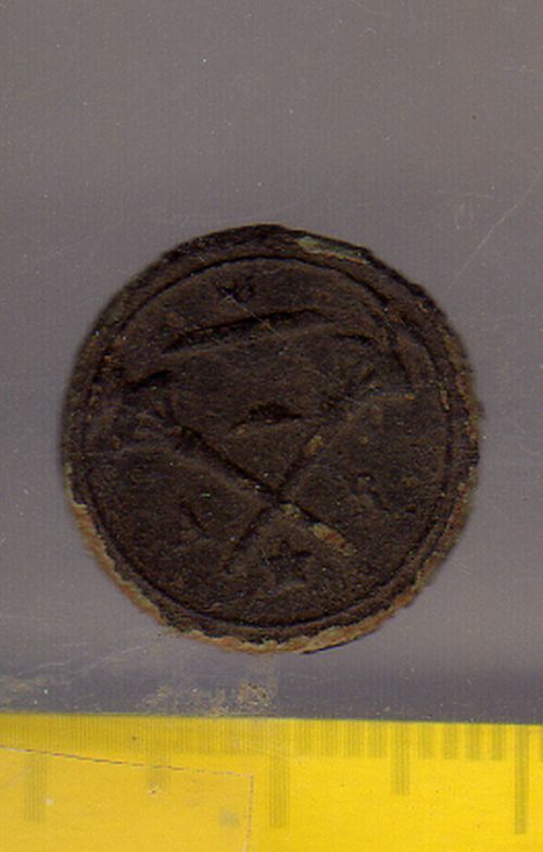 vielleicht kann mir jemand hier bei dem Objekt helfen. Auf der geprägten Seite siehr man oben einen Kelch mit einer Flamme. Darunter zwei gekreuzte Fackeln.