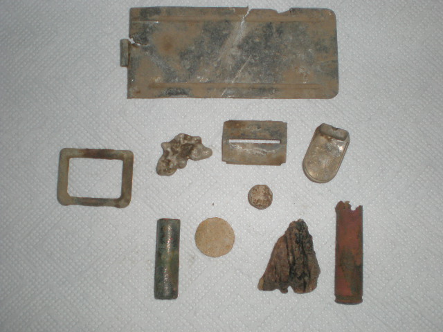 2 ) Jemand eine Idee um was es sich bei den anderen Objekten handeln könnte ? Besonders das lange Blech mit seitlich einer Öse (war sehr stark verbogen)