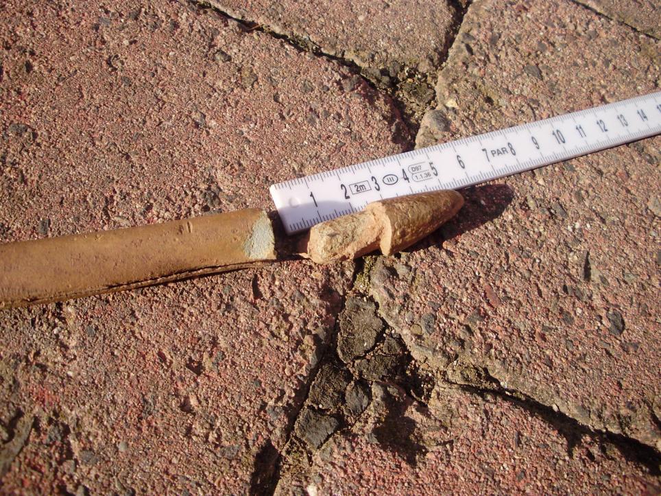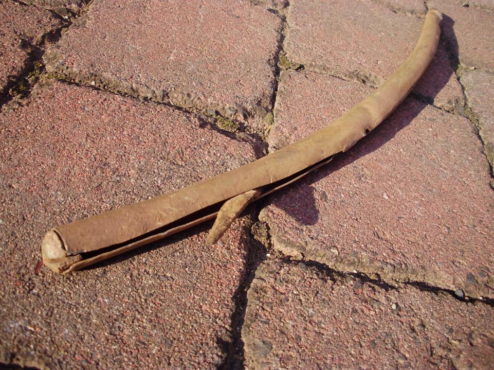 Es ist zur hälfte geschlitzt und darin schiebt sich ein kleines Messer hin und her. Material ?, die Endstücken sind gegossen und außer dem Messer ist nichts Magnetisch.